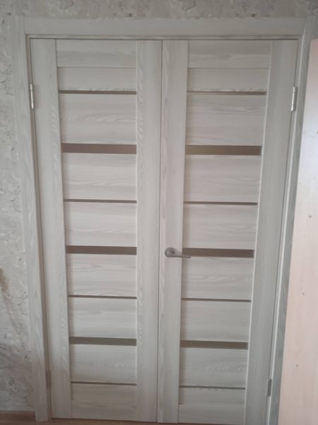 Одна створка не фиксируется, объяснил, что кривой проем и что сделал все, что мог. В принципе, старался, сказал, что ничего не может сделать. Хотя старые двери были, все фиксировалось. У меня кот, поэтому много проблем с этим. В Леруа Мерлен очень хороший консультант попался, Виктор, кажется.